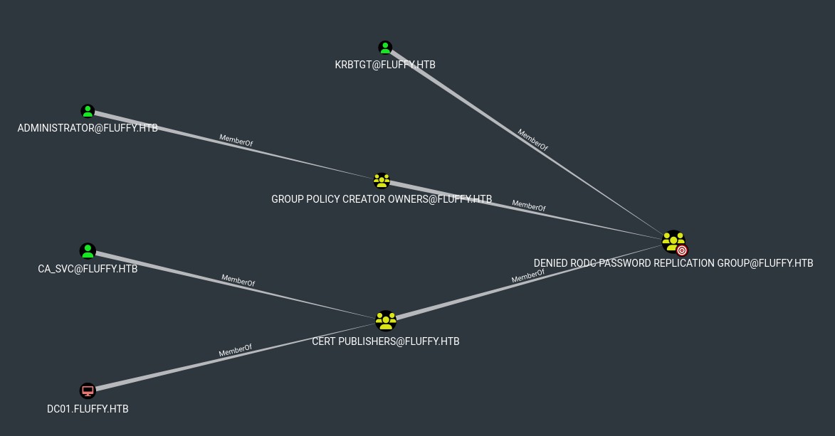 [!NOTE] The Denied RODC Password Replication Group is a well known group that prevents passwords of its members from being cached on Read-Only Domain Controllers (RODCs). This membership doesn't reveal an exploitation path, but it does show that this is a valuable group.