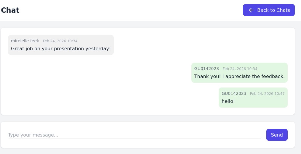 We find chats with two other users GU6262023 and mireielle.feek, the latter seems to be a teacher based on their name format and the discussion: